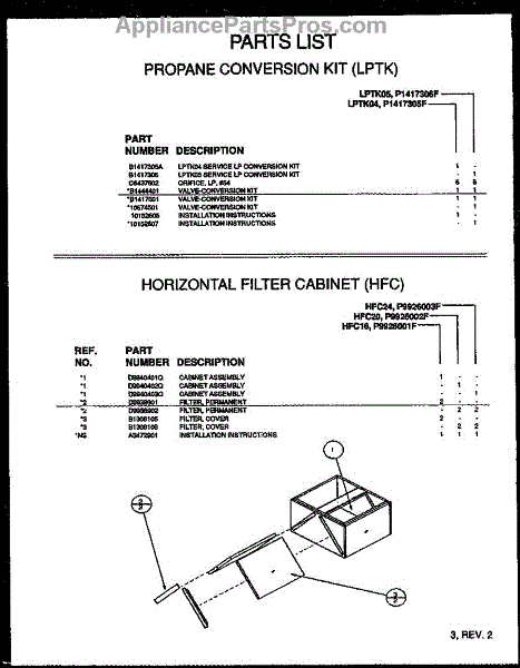 Parts for Amana HALP03/P1129103F: Horizontal Filter Cabinet (Hfc) (Hfc16 / P9926001f) (Hfc20 / P9926002f) (Hfc24 / P9926003f) Parts