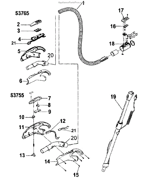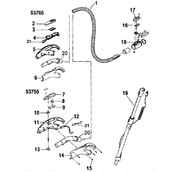 Parts for Hoover S3765: Hose Assy Parts