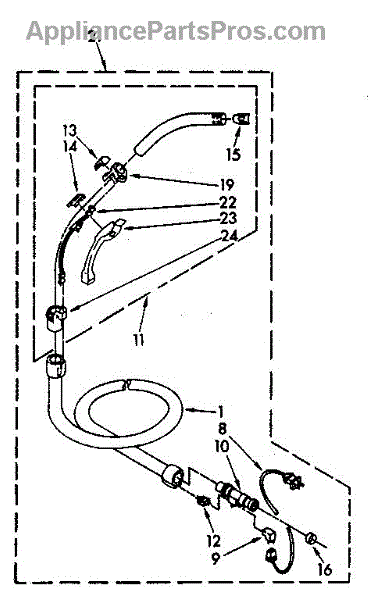 Parts for Kenmore 116.4465180 (1164465180, 116 4465180): Hose Assembly Parts