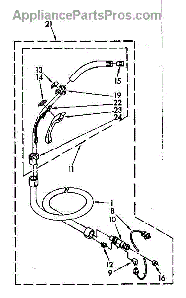 Parts for Kenmore 116.4465280 (1164465280, 116 4465280): Hose Assembly Parts