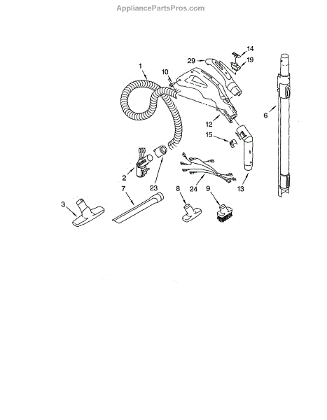 Parts for Kenmore 116.20812008 (11620812008, 116 20812008): Hose And Attachment Parts