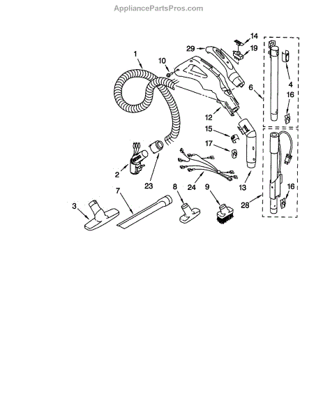 Parts for Kenmore 116.21612001 (11621612001, 116 21612001): Hose And Attachment Parts