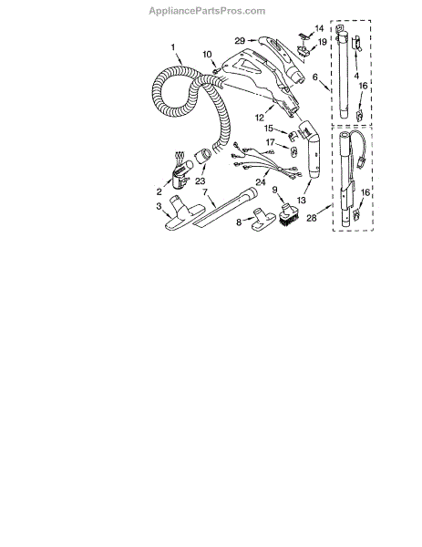 Parts for Kenmore 116.22612205 (11622612205, 116 22612205): Hose And Attachment Parts