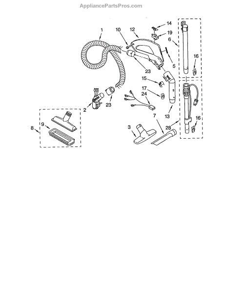 Parts for Kenmore 116.23312300 (11623312300, 116 23312300): Hose And Attachment Parts