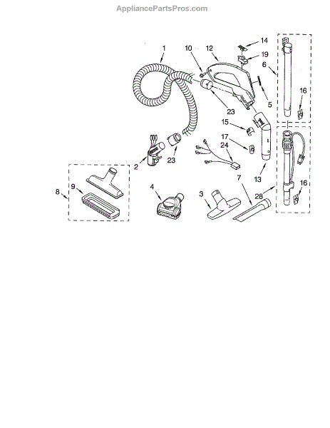 Parts for Kenmore 116.23312305 (11623312305, 116 23312305): Hose And Attachment Parts