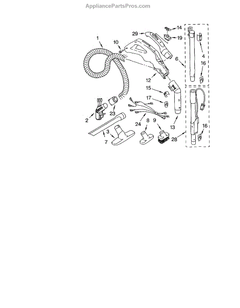 Parts for Kenmore 116.23512300 (11623512300, 116 23512300): Hose And Attachment Parts