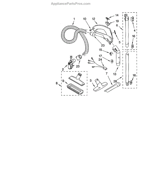 Parts for Kenmore 116.24212401 (11624212401, 116 24212401): Hose And Attachment Parts
