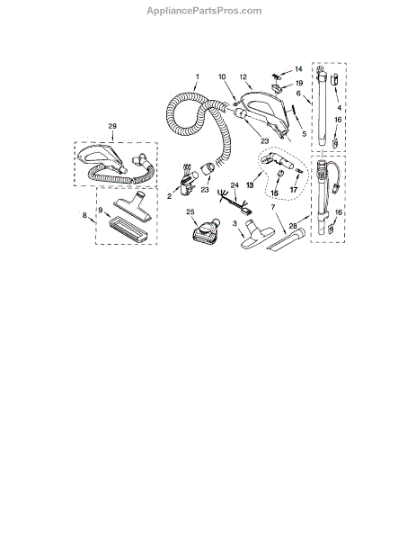 Parts for Kenmore 116.26312602 (11626312602, 116 26312602): Hose And Attachment Parts