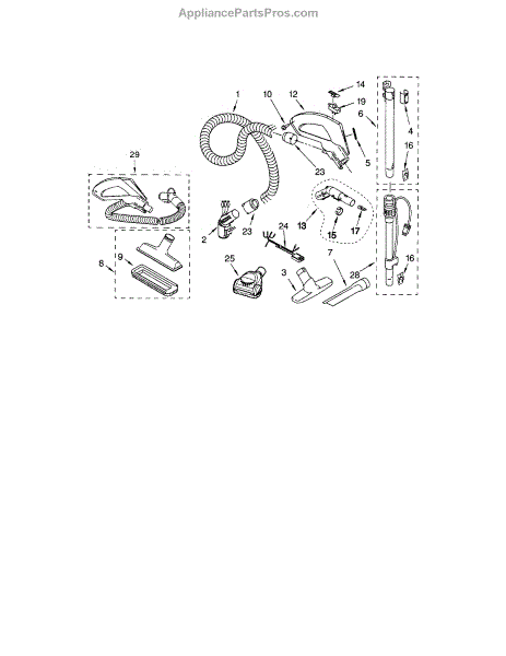 Parts for Kenmore 116.26312605 (11626312605, 116 26312605): Hose And Attachment Parts