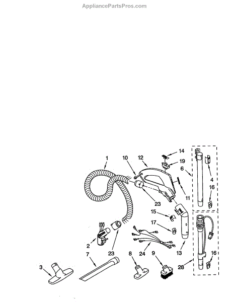 Parts for Kenmore 116.28812790 (11628812790, 116 28812790): Hose And Attachement Parts