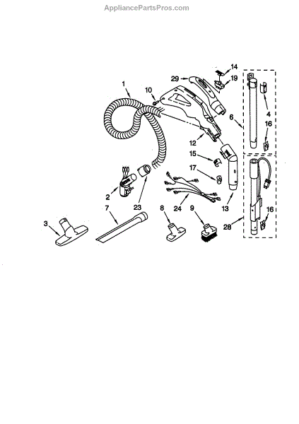 Parts for Kenmore 116.29712990 (11629712990, 116 29712990): Hose And Attachment Parts