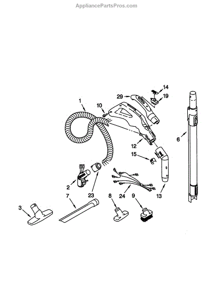 Parts for Kenmore 116.29812990 (11629812990, 116 29812990): Hose And Attachment Parts