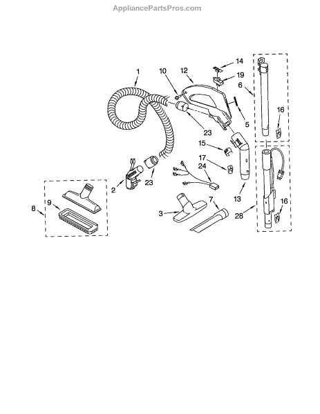 Parts for Kenmore 116.20212001 (11620212001, 116 20212001): Hose And Attachments Parts