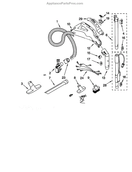 Parts for Kenmore 116.20612003 (11620612003, 116 20612003): Hose And Attachments Parts