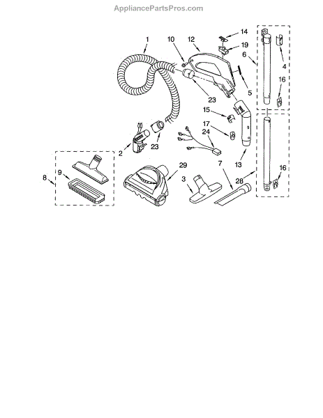 Parts for Kenmore 116.22313203 (11622313203, 116 22313203): Hose And Attachments Parts