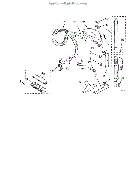 Parts for Kenmore 116.22512203 (11622512203, 116 22512203): Hose And Attachments Parts