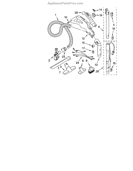 Parts for Kenmore 116.22613208 (11622613208, 116 22613208): Hose And Attachments Parts