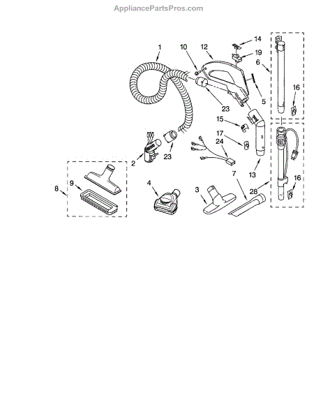 Parts for Kenmore 116.23312304 (11623312304, 116 23312304): Hose And Attachments Parts