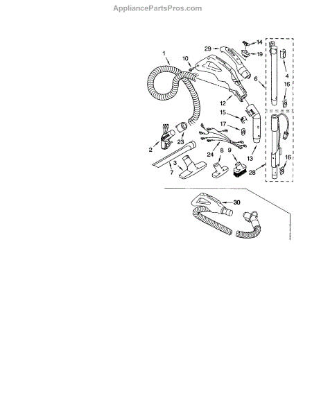 Parts for Kenmore 116.23512303 (11623512303, 116 23512303): Hose And Attachments Parts