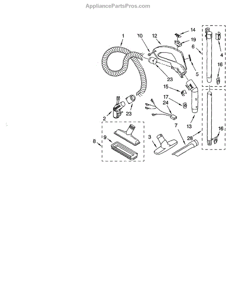 Parts for Kenmore 116.24213400 (11624213400, 116 24213400): Hose And Attachments Parts