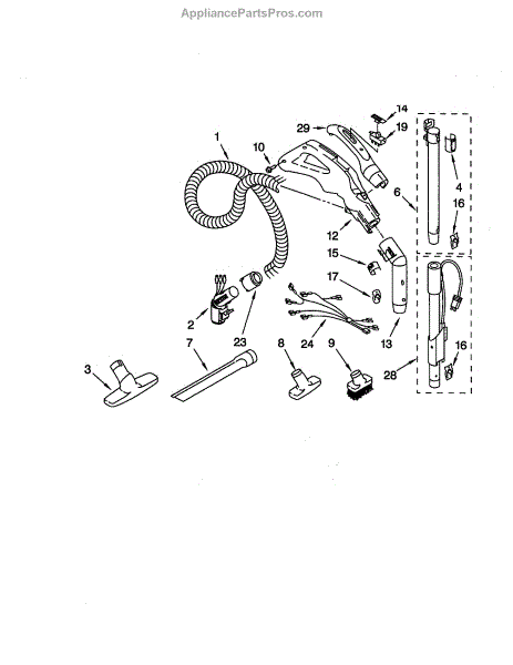 Parts for Kenmore 116.29612992 (11629612992, 116 29612992): Hose And Attachments Parts