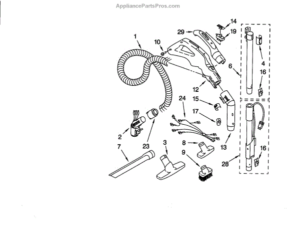 Parts for Kenmore 116.29713990 (11629713990, 116 29713990): Hose And Attachments Parts