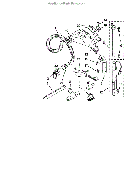 Parts for Kenmore 116.29713996 (11629713996, 116 29713996): Hose And Attachments Parts