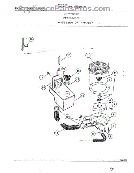 Parts for Frigidaire 6504E-87: Hose And Button Trap Assy Parts