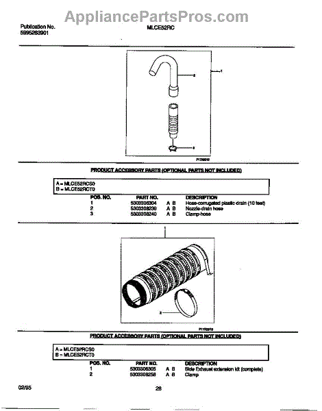 Parts for Frigidaire MLCE52RCT0: 14 - Hose, Exhaust Extension Parts