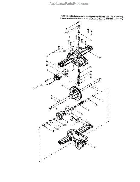 Differential assembly for lawn tractors. Installs in the transmission system to control wheel speed. Replace if cracked, leaking, or worn gears are present.