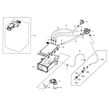Washer detergent drawer housing assembly that holds the dispenser drawer in place. Replace if cracked, broken, or warped to restore proper fit.