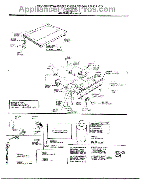 Parts for Frigidaire 8517A: Housing, Top Panel And Mics. Parts