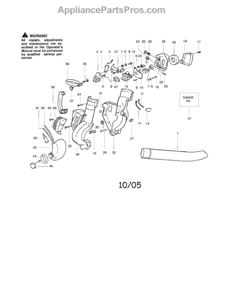 This gasket kit can be used as a replacement part for the small engine of a leaf blower or a leaf vacuum. The function of a gasket kit for a leaf blower or a leaf vacuum is to provide all of the necessary parts to attach the replacement gasket to the engine in order to seal it. The purpose of a gasket is to seal off the components to which it is attached in order to prevent leakages.A gasket kit might have to be ordered as a complete replacement in the event that the gasket for a leaf blower or a leaf vacuums is blown and its fastening components are rendered useless in the process. A gasket can suffer from general wear and tear that loosens its seal or from direct impact upon collision that can knock it out of its place in the small engine. Remember to always wear gloves when handling, repairing, and operating outdoor equipment. This is an OEM part sourced directly from the manufacturer, Husqvarna. It is sold individually. This gasket kit is compatible with the following brands: Husqvarna, Weed Eater, Craftsman, and Poulan.
