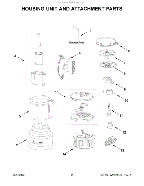 Parts for Kitchenaid KFP1319BM0: Housing Unit And Attachment Parts