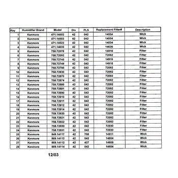 Parts for Kenmore 471.14523 (47114523, 471 14523): Humidifier Parts