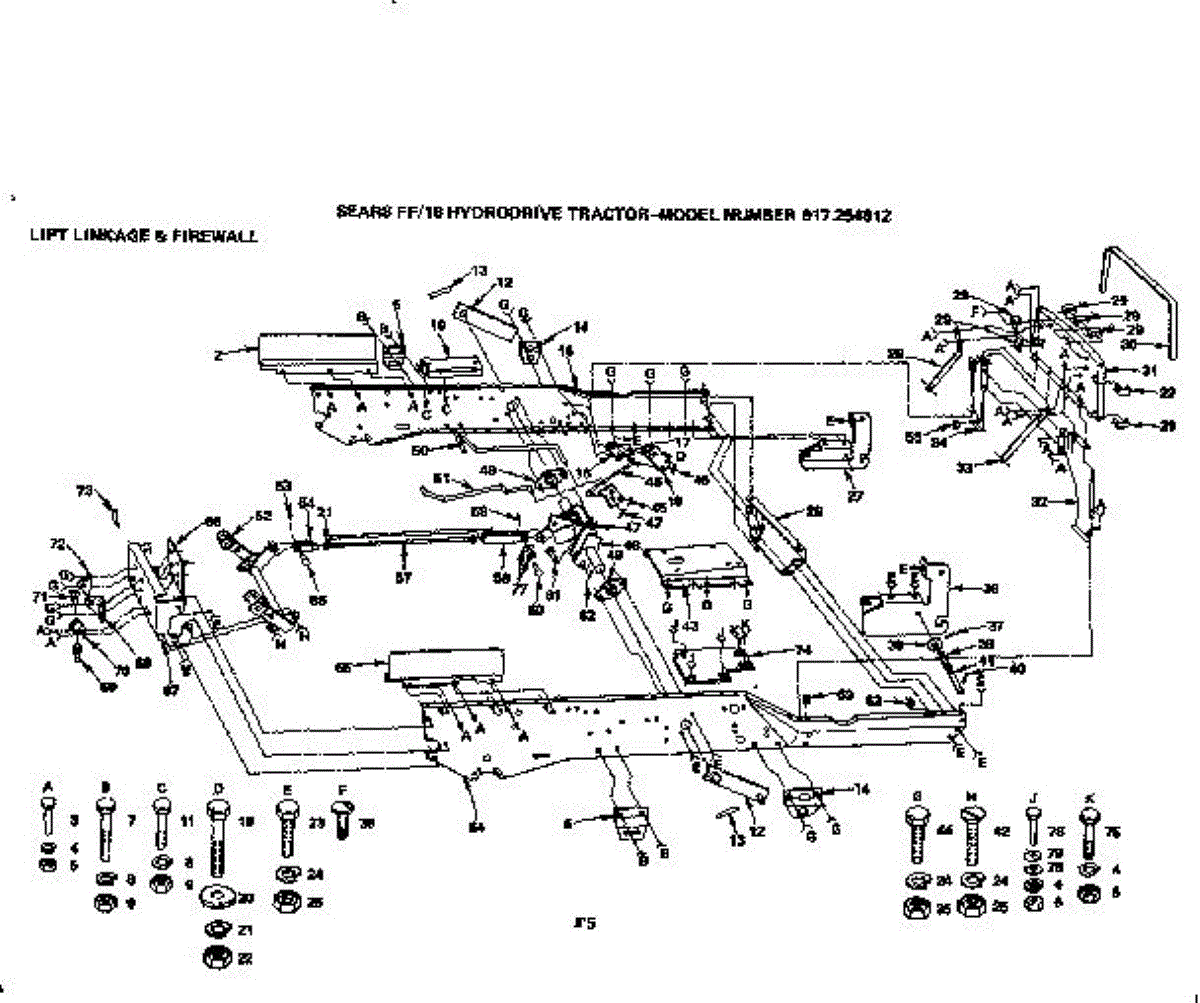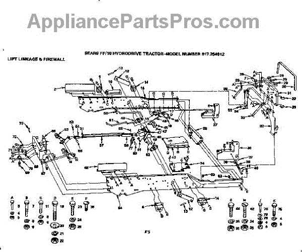 Parts for Craftsman 917254812: 18 Hydrodrive Tractor / Lift Linkage & Firewall Parts