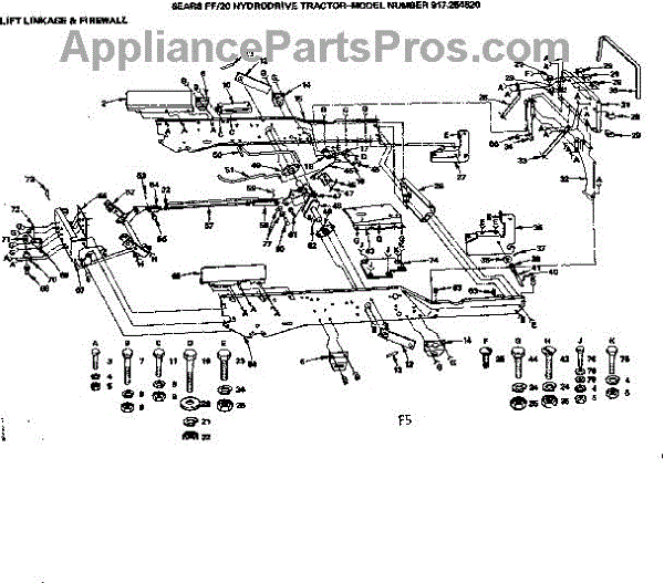 Parts for Craftsman 917254820: 20 Hydrodrive Tractor / Lift Linkage & Firewall Parts