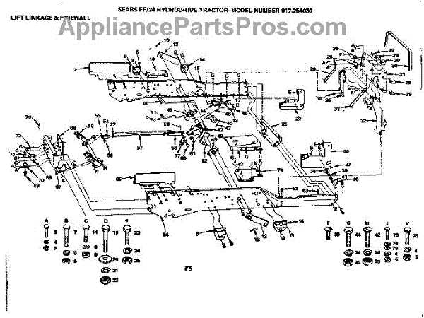 Parts for Craftsman 917254830: 24 Hydrodrive Tractor / Lift Linkage & Firewall Parts
