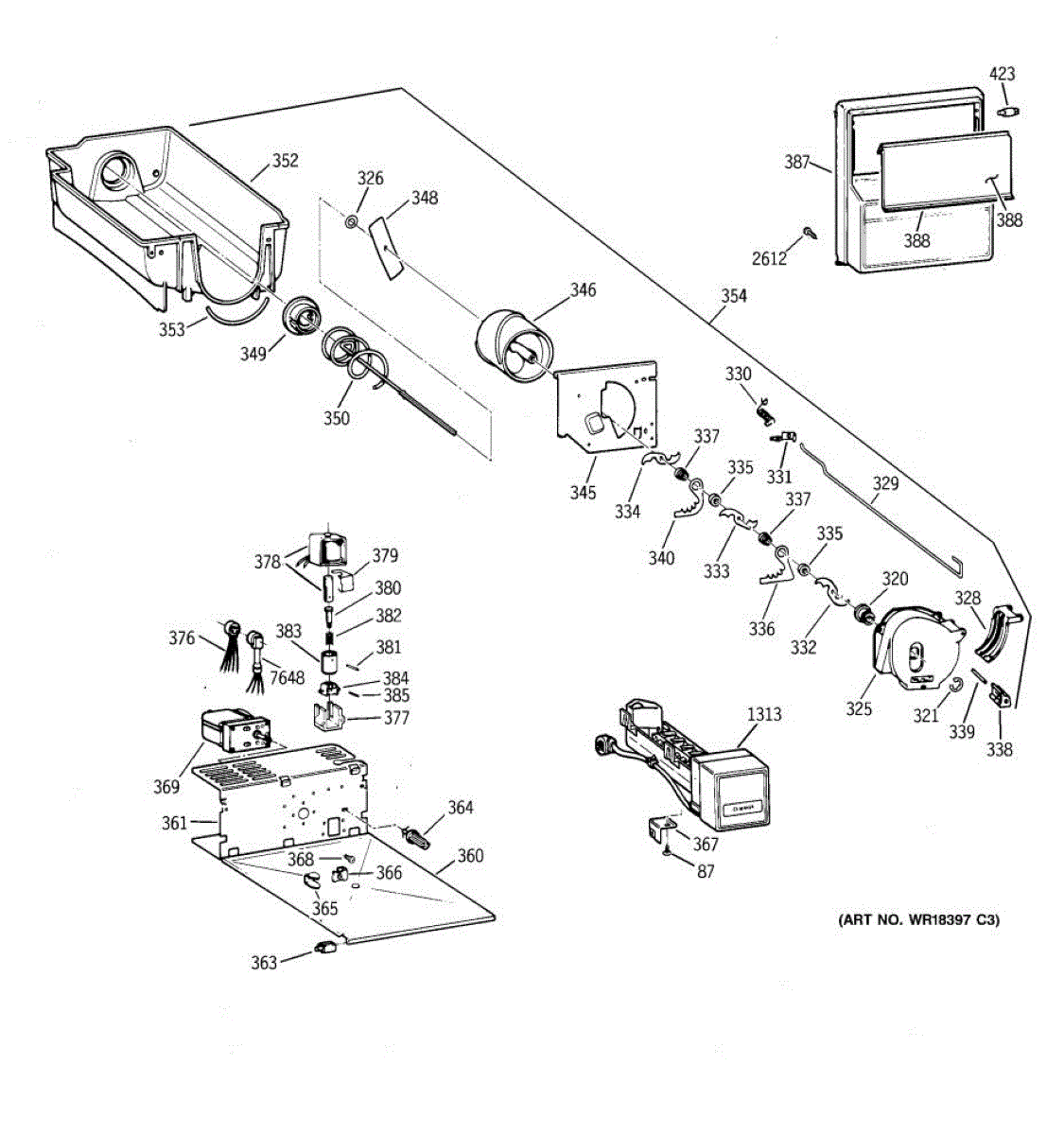 The Electromechanical Icemaker Kit is an OEM replacement part for GE refrigerators. It includes the ice maker assembly components responsible for harvesting, ejecting, and monitoring the ice-making process.
