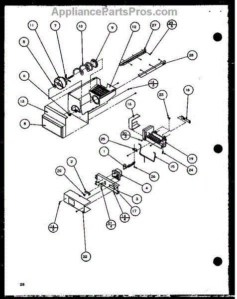 Parts for Amana 36081-P1108701W: Ice Bucket And Ice Maker (36081 / P1108701w) (36091 / P1108703w) (36098 / P1108704w) (36088 / P11108702w) Parts