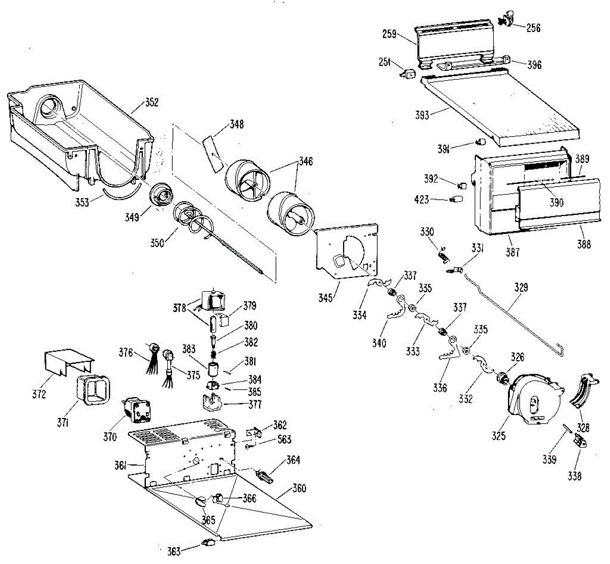 • Works with the dispenser drive and auger assembly to transfer ice from the bin to the chute