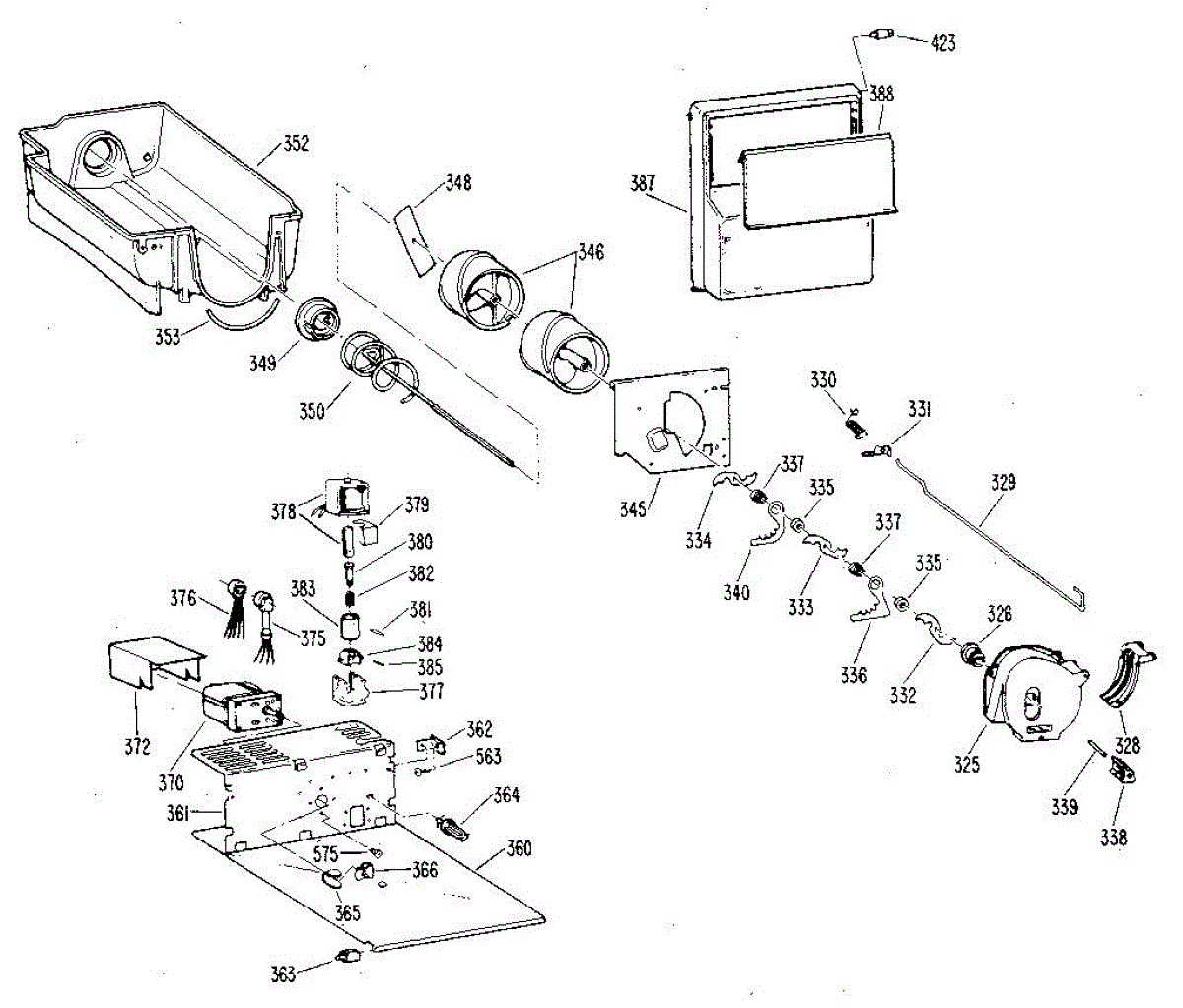 • Works with the dispenser drive and auger assembly to transfer ice from the bin to the chute