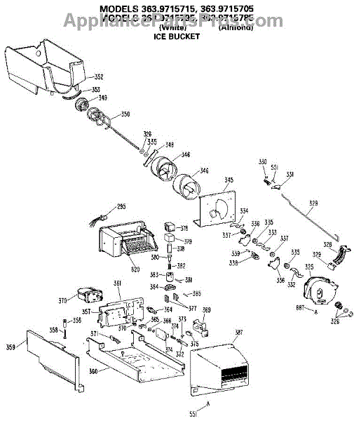 Parts for Kenmore 363.9715715 (3639715715, 363 9715715): Ice Bucket Parts