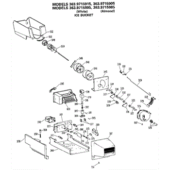 Parts for Kenmore 363.9715905 (3639715905, 363 9715905): Ice Bucket Parts