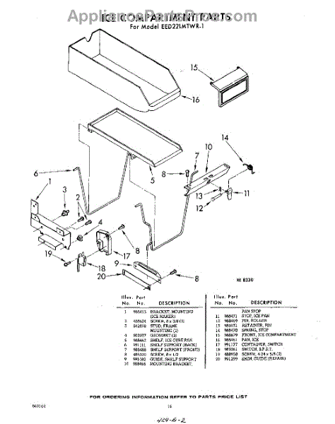 Parts for Whirlpool EED221MTWR1: 16 - Ice Compartment Parts