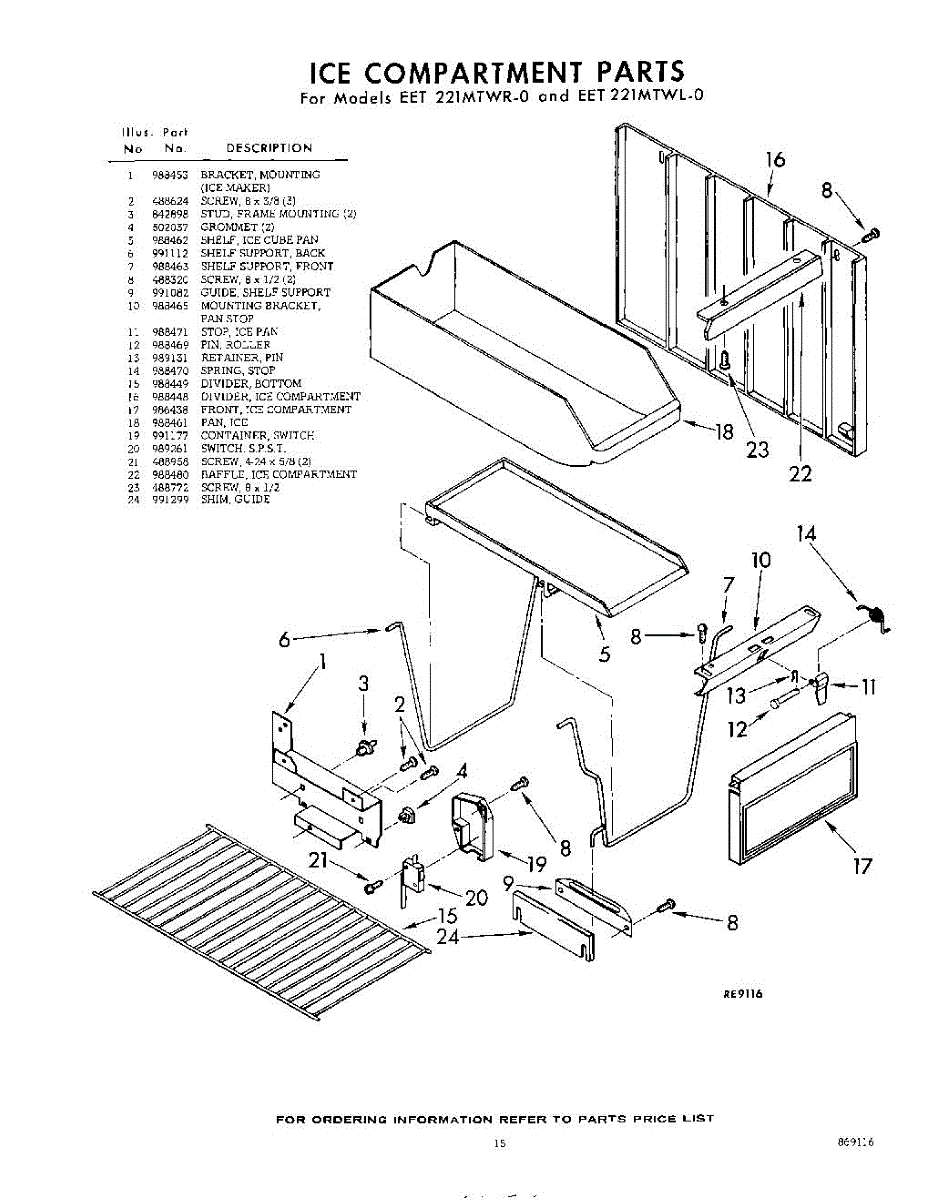 Parts for Whirlpool EET221MTWR0: 15 - Ice Compartment Parts