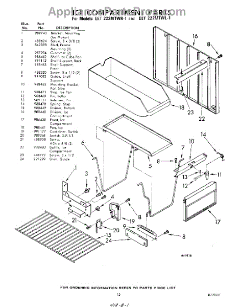 Parts for Whirlpool EET222MTWR1: 15 - Ice Compartment Parts