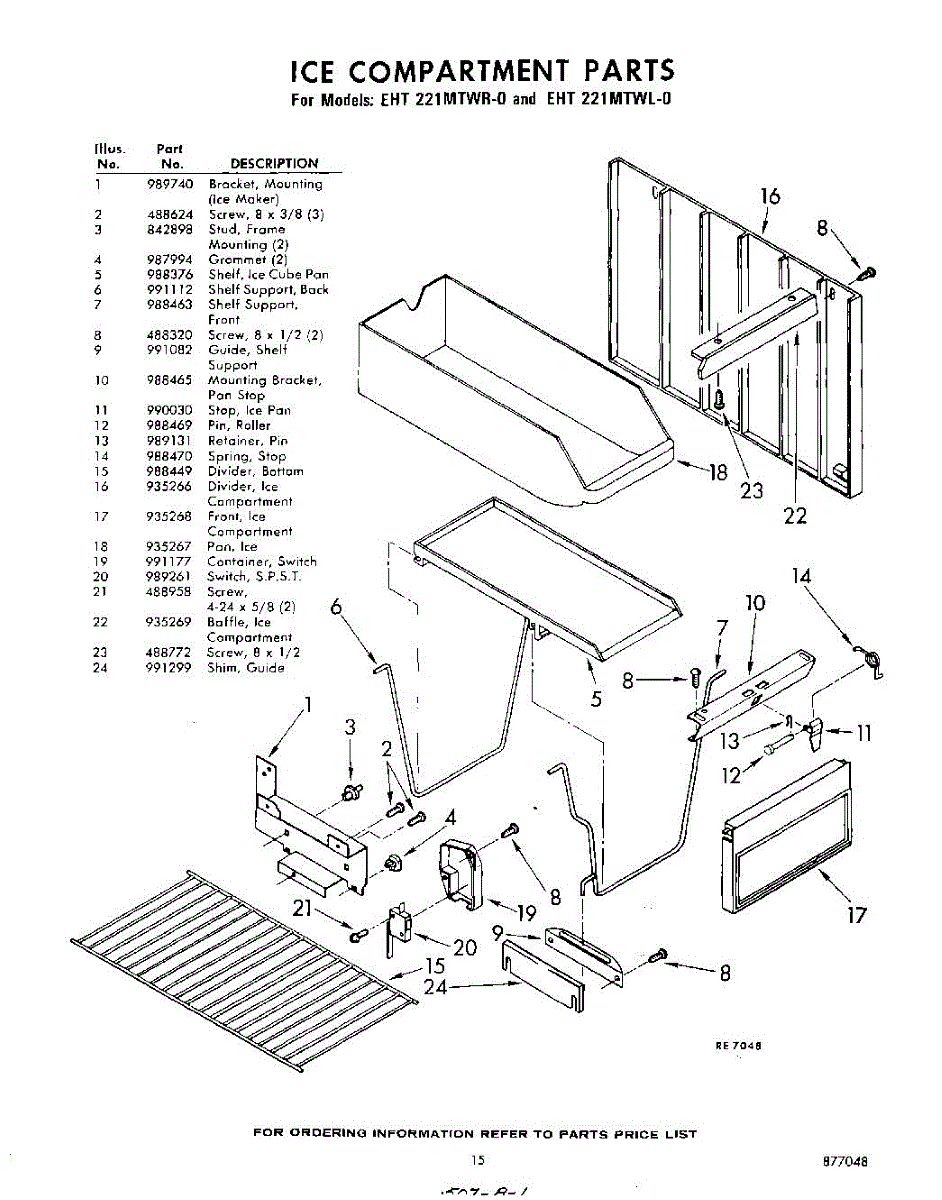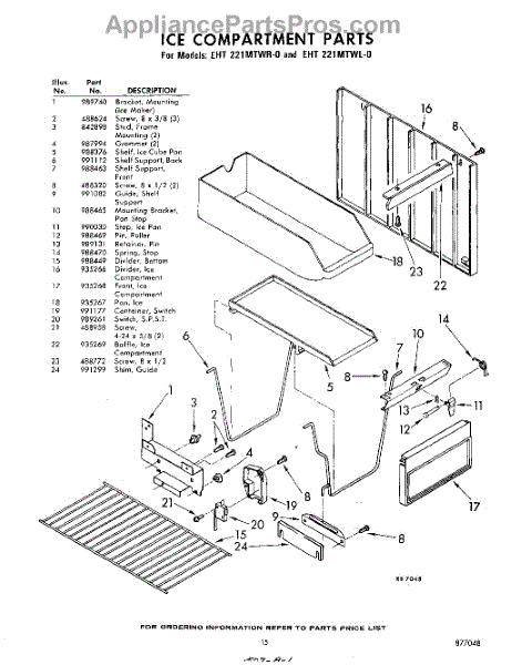 Parts for Whirlpool EHT221MTWR0: 15 - Ice Compartment Parts