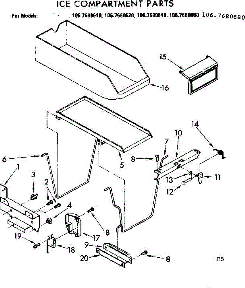 Parts for Kenmore 106.7680610 (1067680610, 106 7680610): Ice Compartment Parts