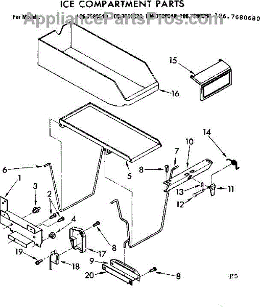 Parts for Kenmore 106.7680680 (1067680680, 106 7680680): Ice Compartment Parts